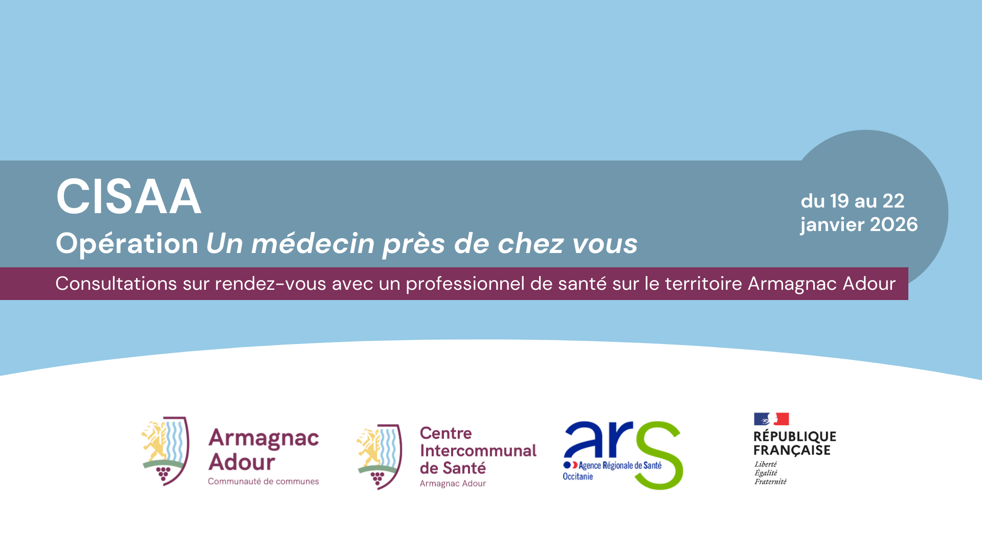 Le Docteur LE MOUËL assurera des consultations sur rendez-vous, du 19 au 22 janvier 2026, au cabinet médical, situé 4 rue des écoles à Riscle.